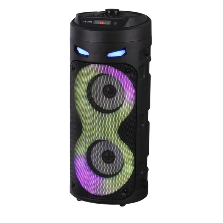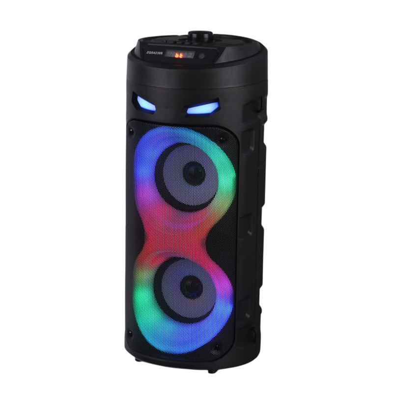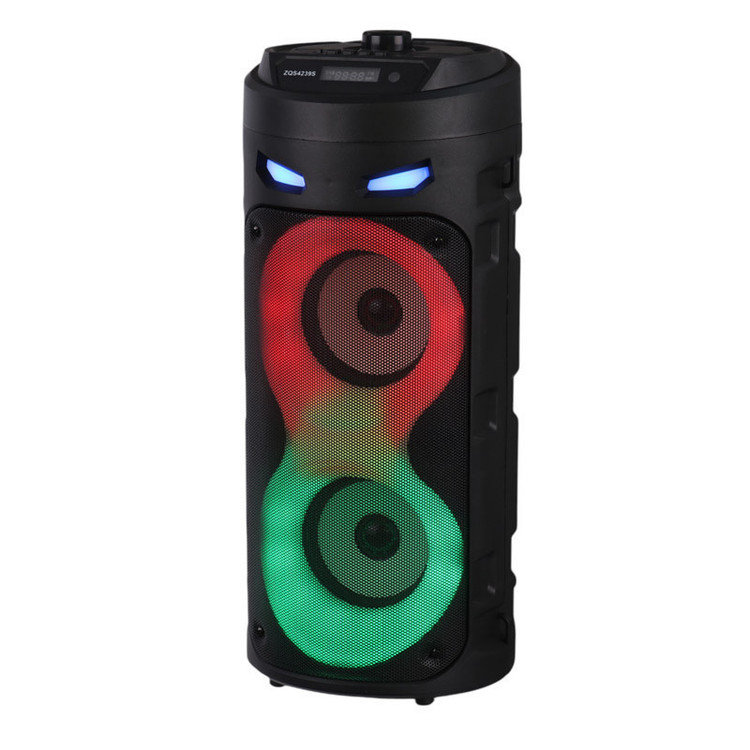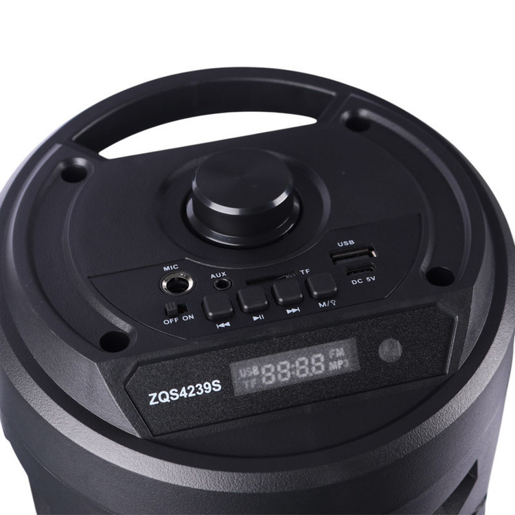 اسپیکر چمدانی بی سیم و قابل حمل مدل ZQS4239S همراه میکروفن وایرلس و ریموت کنترل میباشد ابعاد اسپیکر 166×166×410 میلیمتر،بدنه محکم از مواد مرغوب ساخته شده است که مقاومت بالایی در برابر آسیب هایی نظیر ضربه و فشار از خود نشان میدهد این اسپیکر از کیفیت پخش صدای قدرتمندی برای جشن ها و مهمانی ها به خصوص در محیط باز و شلوغ برخوردار میباشد.دارای نور پردازی داخلی در هنگام پخش موسیقی،نمایشگر LED وپنلی از دکمه های فیزیکی جهت مدیریت موسیقی ؛ تنظیم ولوم ونور…. بر روی بدنه تعبیه شده ویک ریموت کنترل نیز همراه آن قرار دارد تا از راه دور این تنظیمات نیز برای کاربر امکان پذیر باشد- شارژ مجدد باتری نیز به وسیله آداپتور مخصوص قابل انجام میباشد ورودی شامل USB-AUX-BLUETOOTHمیباشد.