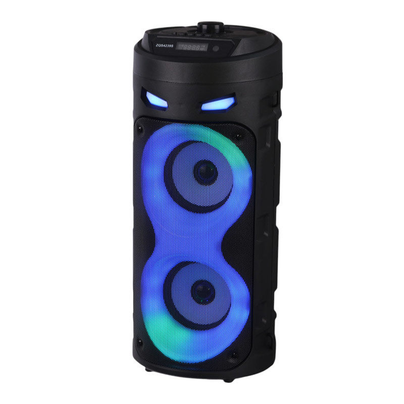 اسپیکر چمدانی بی سیم و قابل حمل مدل ZQS4239S همراه میکروفن وایرلس و ریموت کنترل میباشد ابعاد اسپیکر 166×166×410 میلیمتر،بدنه محکم از مواد مرغوب ساخته شده است که مقاومت بالایی در برابر آسیب هایی نظیر ضربه و فشار از خود نشان میدهد این اسپیکر از کیفیت پخش صدای قدرتمندی برای جشن ها و مهمانی ها به خصوص در محیط باز و شلوغ برخوردار میباشد.دارای نور پردازی داخلی در هنگام پخش موسیقی،نمایشگر LED وپنلی از دکمه های فیزیکی جهت مدیریت موسیقی ؛ تنظیم ولوم ونور…. بر روی بدنه تعبیه شده ویک ریموت کنترل نیز همراه آن قرار دارد تا از راه دور این تنظیمات نیز برای کاربر امکان پذیر باشد- شارژ مجدد باتری نیز به وسیله آداپتور مخصوص قابل انجام میباشد ورودی شامل USB-AUX-BLUETOOTHمیباشد.